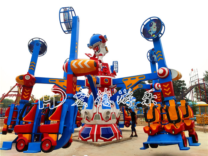 神州登月茄子视频app官网下载二维码是宏德游乐开发的新型茄子视频app官网下载二维码,以登月探索为主题,中心柱是一个造型科幻的太空飞船,其上站立一名成功登月的宇航员,手执红旗挥舞着,周围是力六个登月车,呼应主题,取名“神州登月”,带领游客探索太空的奥秘,寓教于乐,自设备安装起,其宏伟独特的造型、新颖的主题、刺激的乘坐感受,广受游客们欢迎。